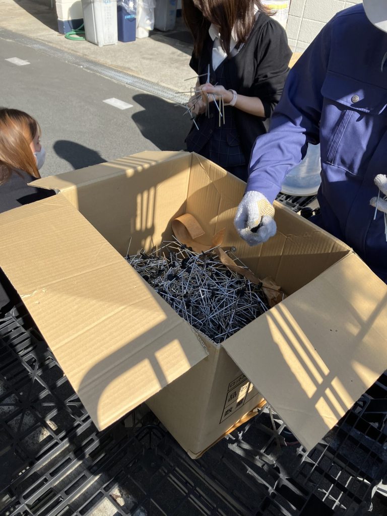 寒さが続く中、この日は日差しが暖かいぽかぽか陽気で、段ボール2箱にいっぱいあった分別作業もみんなで行うとあっという間に終わりましたヽ(^o^)丿